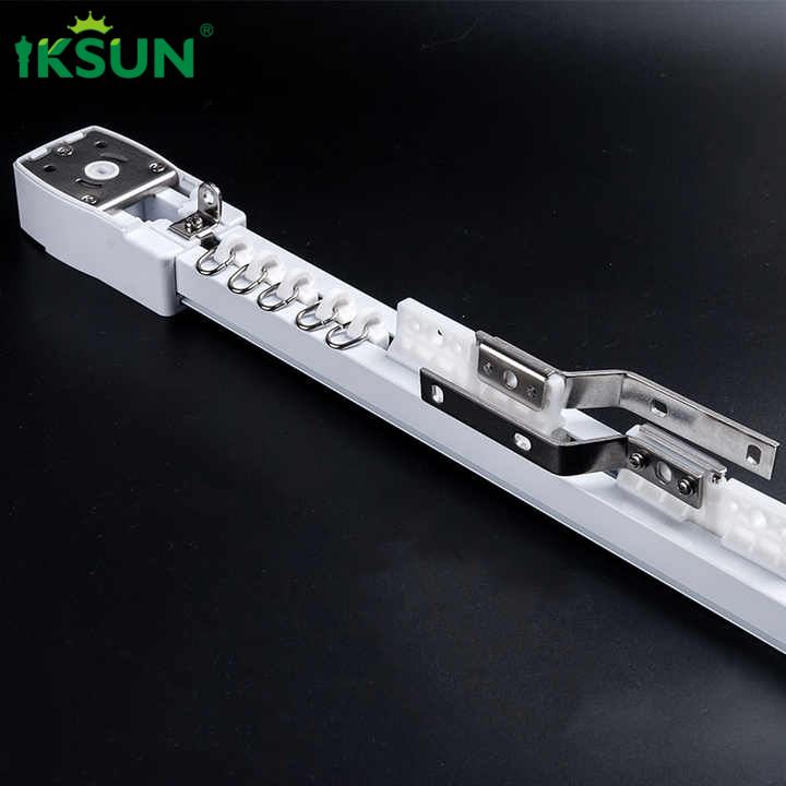 IKSUN Wholesale Manufacturer Silent Ripple Fold Design WiFi Tuya Motorized Smart Home Aluminium Electric Curtain Rail Track System
